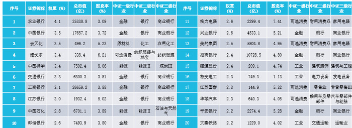 图:中证A500红利低波指数前二十大成份股