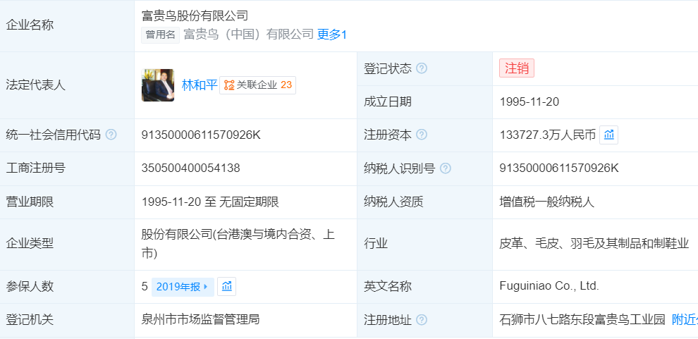 2019年8月26日,富贵鸟公告宣布公司破产,并取消上市地位。